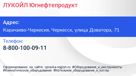 ЛУКОЙЛ-Югнефтепродукт по адресу Карачаево-Черкесия, Черкесск, улица Доватора, 71 в дальнейшем Организация, размещена в следующих категориях: