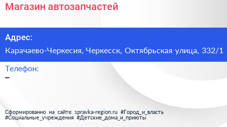 Магазин автозапчастей по адресу Карачаево-Черкесия, Черкесск, Октябрьская улица, 332/1 в дальнейшем Организация, размещена в следующих категориях: