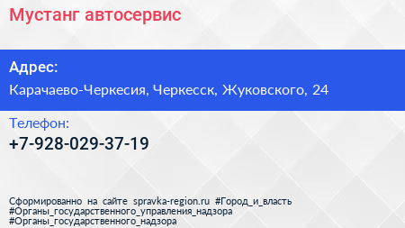 Мустанг, автосервис по адресу Карачаево-Черкесия, Черкесск, Жуковского, 24 в дальнейшем Организация, размещена в следующих категориях: