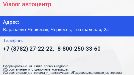 Vianor, автоцентр по адресу Карачаево-Черкесия, Черкесск, Театральная, 2а в дальнейшем Организация, размещена в следующих категориях: