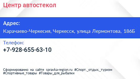 Центр автостекол по адресу Карачаево-Черкесия, Черкесск, улица Лермонтова, 186Б в дальнейшем Организация, размещена в следующих категориях: