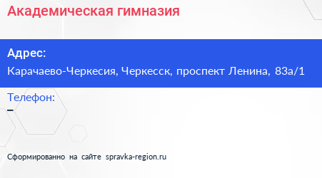 Академическая гимназия по адресу Карачаево-Черкесия, Черкесск, проспект Ленина, 83а/1 в дальнейшем Организация, размещена в следующих категориях: