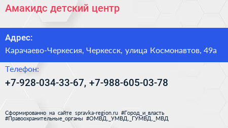 Амакидс, детский центр по адресу Карачаево-Черкесия, Черкесск, улица Космонавтов, 49а в дальнейшем Организация, размещена в следующих категориях: