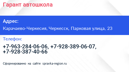Гарант, автошкола по адресу Карачаево-Черкесия, Черкесск, Парковая улица, 23 в дальнейшем Организация, размещена в следующих категориях: