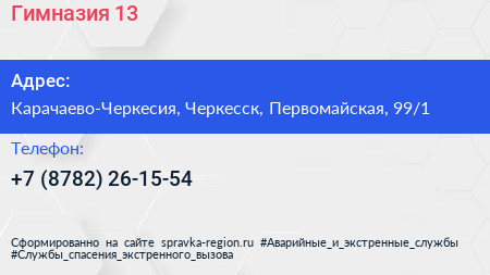 Гимназия №13 по адресу Карачаево-Черкесия, Черкесск, Первомайская, 99/1 в дальнейшем Организация, размещена в следующих категориях: