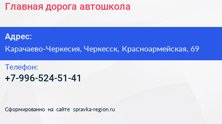 Главная дорога, автошкола по адресу Карачаево-Черкесия, Черкесск, Красноармейская, 69 в дальнейшем Организация, размещена в следующих категориях: