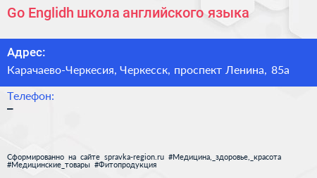 Go Englidh, школа английского языка по адресу Карачаево-Черкесия, Черкесск, проспект Ленина, 85а в дальнейшем Организация, размещена в следующих категориях: