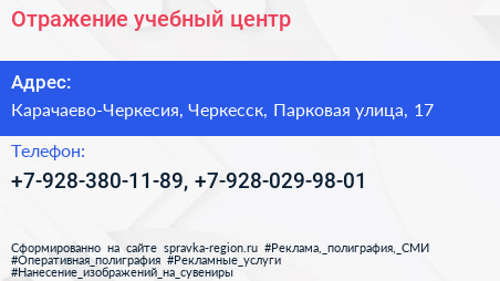 Отражение, учебный центр по адресу Карачаево-Черкесия, Черкесск, Парковая улица, 17 в дальнейшем Организация, размещена в следующих категориях: