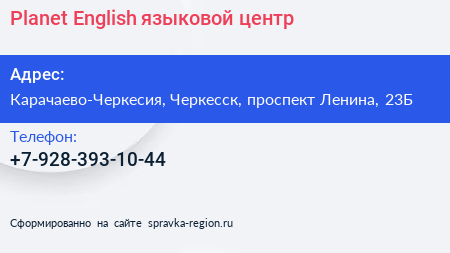 Planet English, языковой центр по адресу Карачаево-Черкесия, Черкесск, проспект Ленина, 23Б в дальнейшем Организация, размещена в следующих категориях: