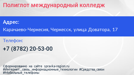 Полиглот, международный колледж по адресу Карачаево-Черкесия, Черкесск, улица Доватора, 17 в дальнейшем Организация, размещена в следующих категориях: