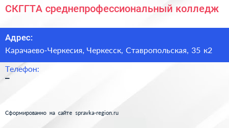 СКГГТА, среднепрофессиональный колледж по адресу Карачаево-Черкесия, Черкесск, Ставропольская, 35 к2 в дальнейшем Организация, размещена в следующих категориях: