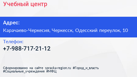 Учебный центр по адресу Карачаево-Черкесия, Черкесск, Одесский переулок, 10 в дальнейшем Организация, размещена в следующих категориях: