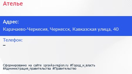 Ателье по адресу Карачаево-Черкесия, Черкесск, Кавказская улица, 40 в дальнейшем Организация, размещена в следующих категориях: