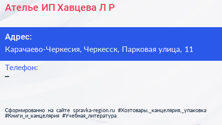 Ателье, ИП Хавцева Л.Р. по адресу Карачаево-Черкесия, Черкесск, Парковая улица, 11 в дальнейшем Организация, размещена в следующих категориях: