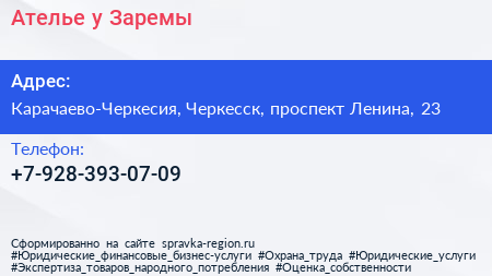 Ателье у Заремы по адресу Карачаево-Черкесия, Черкесск, проспект Ленина, 23 в дальнейшем Организация, размещена в следующих категориях: