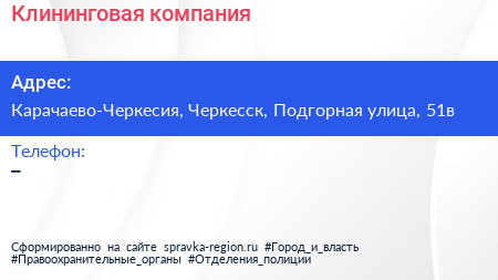 Клининговая компания по адресу Карачаево-Черкесия, Черкесск, Подгорная улица, 51в в дальнейшем Организация, размещена в следующих категориях: