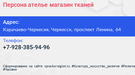 Персона, ателье-магазин тканей по адресу Карачаево-Черкесия, Черкесск, проспект Ленина, 64 в дальнейшем Организация, размещена в следующих категориях: