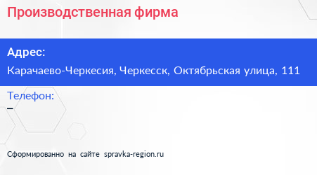 Производственная фирма по адресу Карачаево-Черкесия, Черкесск, Октябрьская улица, 111 в дальнейшем Организация, размещена в следующих категориях: