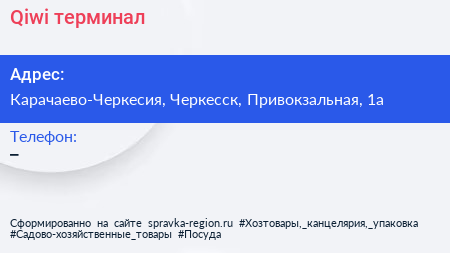 Qiwi, терминал по адресу Карачаево-Черкесия, Черкесск, Привокзальная, 1а в дальнейшем Организация, размещена в следующих категориях:
