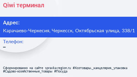 Qiwi, терминал по адресу Карачаево-Черкесия, Черкесск, Октябрьская улица, 338/1 в дальнейшем Организация, размещена в следующих категориях: