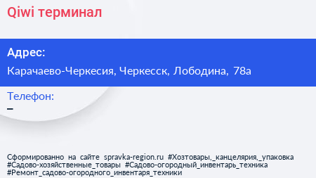 Qiwi, терминал по адресу Карачаево-Черкесия, Черкесск, Лободина, 78а в дальнейшем Организация, размещена в следующих категориях:
