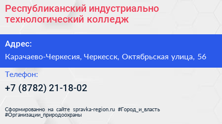 Республиканский индустриально-технологический колледж по адресу Карачаево-Черкесия, Черкесск, Октябрьская улица, 56 в дальнейшем Организация, размещена в следующих категориях: