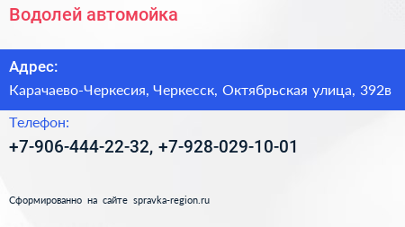 Водолей, автомойка по адресу Карачаево-Черкесия, Черкесск, Октябрьская улица, 392в в дальнейшем Организация, размещена в следующих категориях: