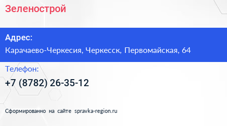 Зеленострой по адресу Карачаево-Черкесия, Черкесск, Первомайская, 64 в дальнейшем Организация, размещена в следующих категориях: