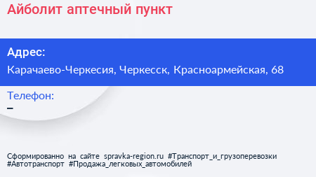Айболит, аптечный пункт по адресу Карачаево-Черкесия, Черкесск, Красноармейская, 68 в дальнейшем Организация, размещена в следующих категориях: