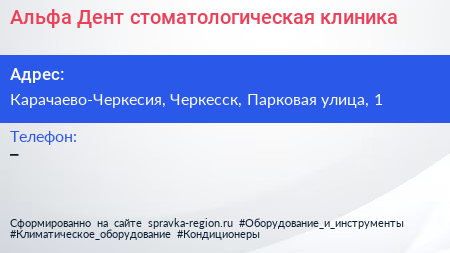 Альфа Дент, стоматологическая клиника по адресу Карачаево-Черкесия, Черкесск, Парковая улица, 1 в дальнейшем Организация, размещена в следующих категориях: