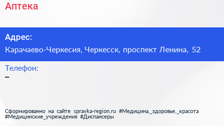 Аптека по адресу Карачаево-Черкесия, Черкесск, проспект Ленина, 52 в дальнейшем Организация, размещена в следующих категориях: