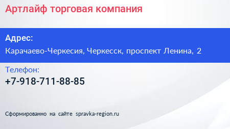 Артлайф, торговая компания по адресу Карачаево-Черкесия, Черкесск, проспект Ленина, 2 в дальнейшем Организация, размещена в следующих категориях: