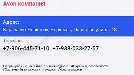 Avon, компания по адресу Карачаево-Черкесия, Черкесск, Парковая улица, 13 в дальнейшем Организация, размещена в следующих категориях: