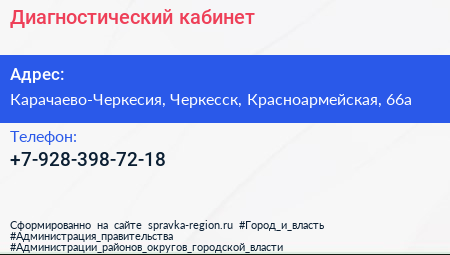 Диагностический кабинет по адресу Карачаево-Черкесия, Черкесск, Красноармейская, 66а в дальнейшем Организация, размещена в следующих категориях: