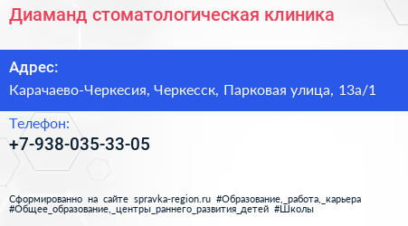 Диаманд, стоматологическая клиника по адресу Карачаево-Черкесия, Черкесск, Парковая улица, 13а/1 в дальнейшем Организация, размещена в следующих категориях: