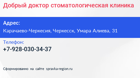 Добрый доктор, стоматологическая клиника по адресу Карачаево-Черкесия, Черкесск, Умара Алиева, 31 в дальнейшем Организация, размещена в следующих категориях:
