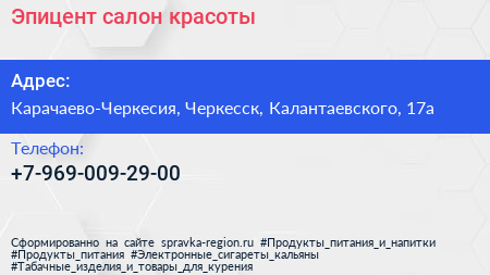Эпицент, салон красоты по адресу Карачаево-Черкесия, Черкесск, Калантаевского, 17а в дальнейшем Организация, размещена в следующих категориях: