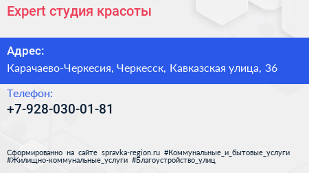Expert, студия красоты по адресу Карачаево-Черкесия, Черкесск, Кавказская улица, 36 в дальнейшем Организация, размещена в следующих категориях: