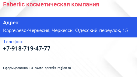 Faberlic, косметическая компания по адресу Карачаево-Черкесия, Черкесск, Одесский переулок, 15 в дальнейшем Организация, размещена в следующих категориях: