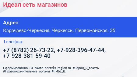 Идеал, сеть магазинов по адресу Карачаево-Черкесия, Черкесск, Первомайская, 35 в дальнейшем Организация, размещена в следующих категориях: