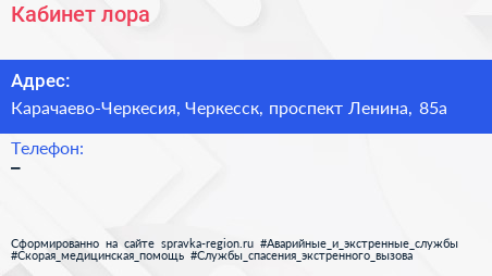 Кабинет лора по адресу Карачаево-Черкесия, Черкесск, проспект Ленина, 85а в дальнейшем Организация, размещена в следующих категориях: