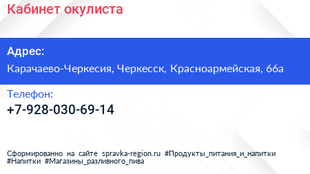 Кабинет окулиста по адресу Карачаево-Черкесия, Черкесск, Красноармейская, 66а в дальнейшем Организация, размещена в следующих категориях: