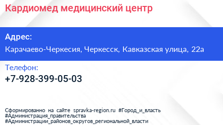 Кардиомед, медицинский центр по адресу Карачаево-Черкесия, Черкесск, Кавказская улица, 22а в дальнейшем Организация, размещена в следующих категориях: