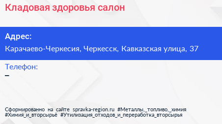 Кладовая здоровья, салон по адресу Карачаево-Черкесия, Черкесск, Кавказская улица, 37 в дальнейшем Организация, размещена в следующих категориях: