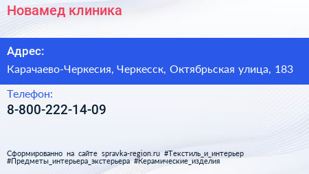 Новамед, клиника по адресу Карачаево-Черкесия, Черкесск, Октябрьская улица, 183 в дальнейшем Организация, размещена в следующих категориях: