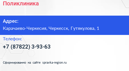 Поликлиника по адресу Карачаево-Черкесия, Черкесск, Гутякулова, 1 в дальнейшем Организация, размещена в следующих категориях:
