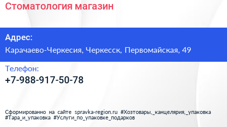 Стоматология, магазин по адресу Карачаево-Черкесия, Черкесск, Первомайская, 49 в дальнейшем Организация, размещена в следующих категориях: