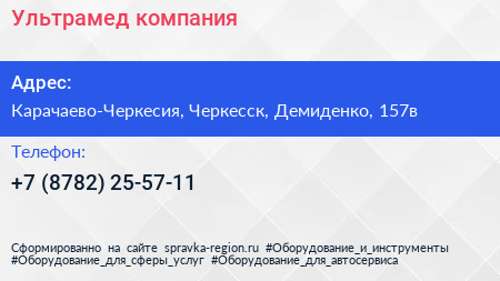 Ультрамед, компания по адресу Карачаево-Черкесия, Черкесск, Демиденко, 157в в дальнейшем Организация, размещена в следующих категориях: