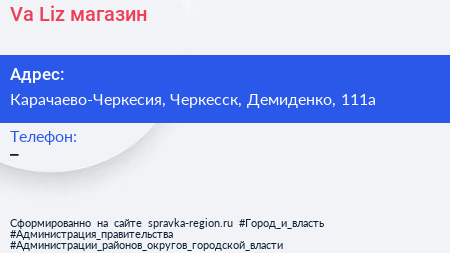 Va-Liz, магазин по адресу Карачаево-Черкесия, Черкесск, Демиденко, 111а в дальнейшем Организация, размещена в следующих категориях: