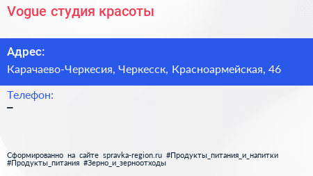 Vogue, студия красоты по адресу Карачаево-Черкесия, Черкесск, Красноармейская, 46 в дальнейшем Организация, размещена в следующих категориях:
